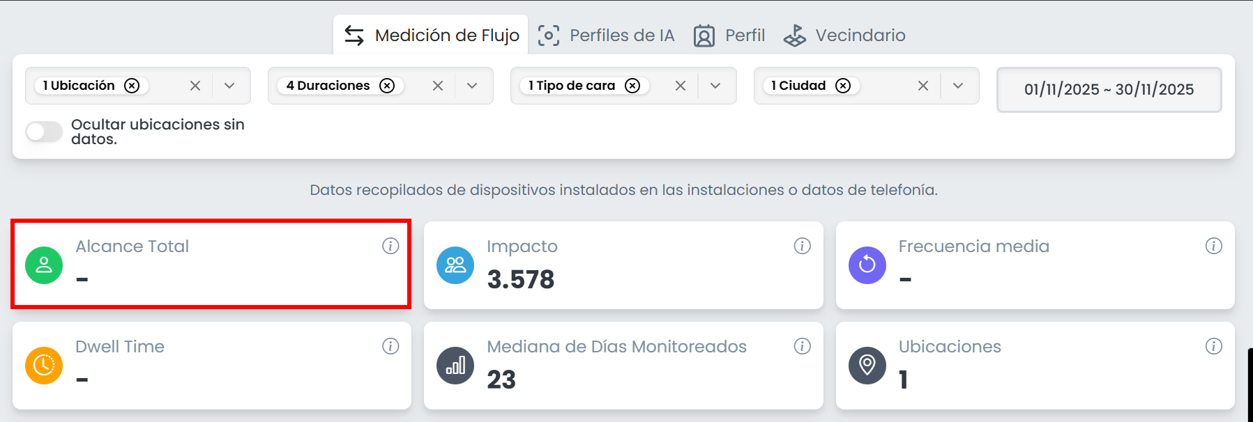 Qué significa: Personas diferentes que pasaron por el lugar y tuvieron la oportunidad de ver sus pantallas durante el período analizado.