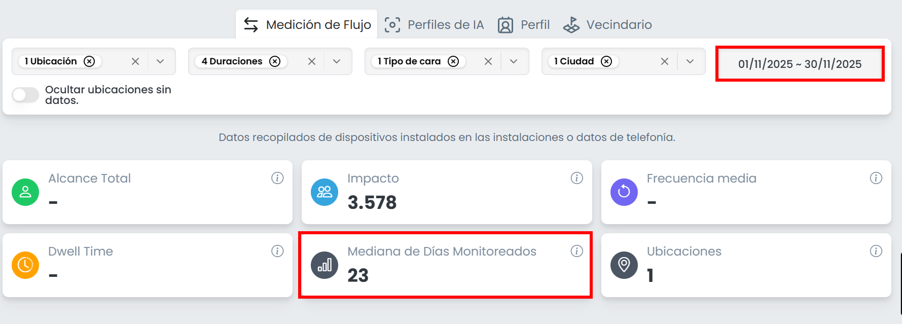 Cuántos días las cámaras estuvieron activas recolectando datos en este período de análisis.
