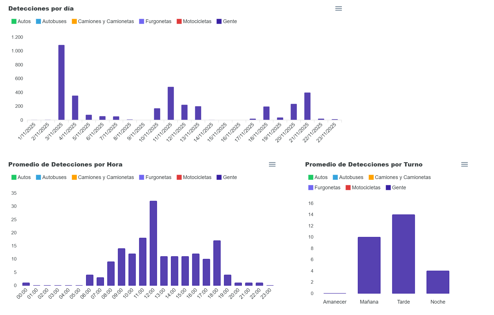 Cómo funciona técnicamente: La inteligencia artificial de las cámaras fue entrenada para diferenciar personas de vehículos y otros objetos. Cada tipo es contado separadamente.